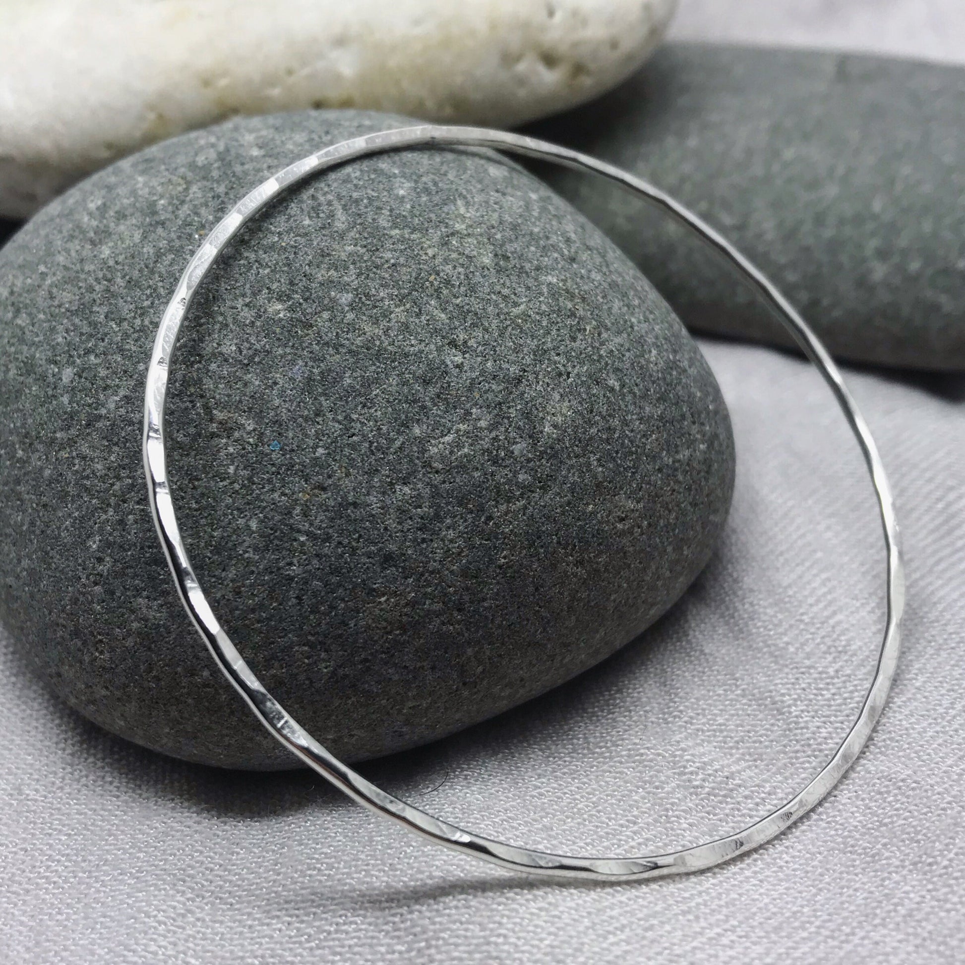 Handcrafted sterling silver bangle, these slim silver bangles look great worn alone or stacked up together.